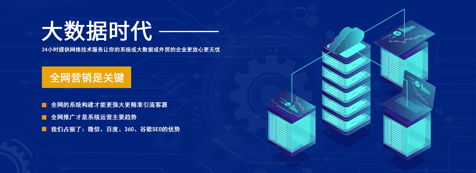 服務(wù)特色:24小時(shí)提供網(wǎng)絡(luò)技術(shù)支持,讓你的系統(tǒng)或大數(shù)據(jù)或外貿(mào)的企業(yè)更放心更無(wú)憂(yōu)。